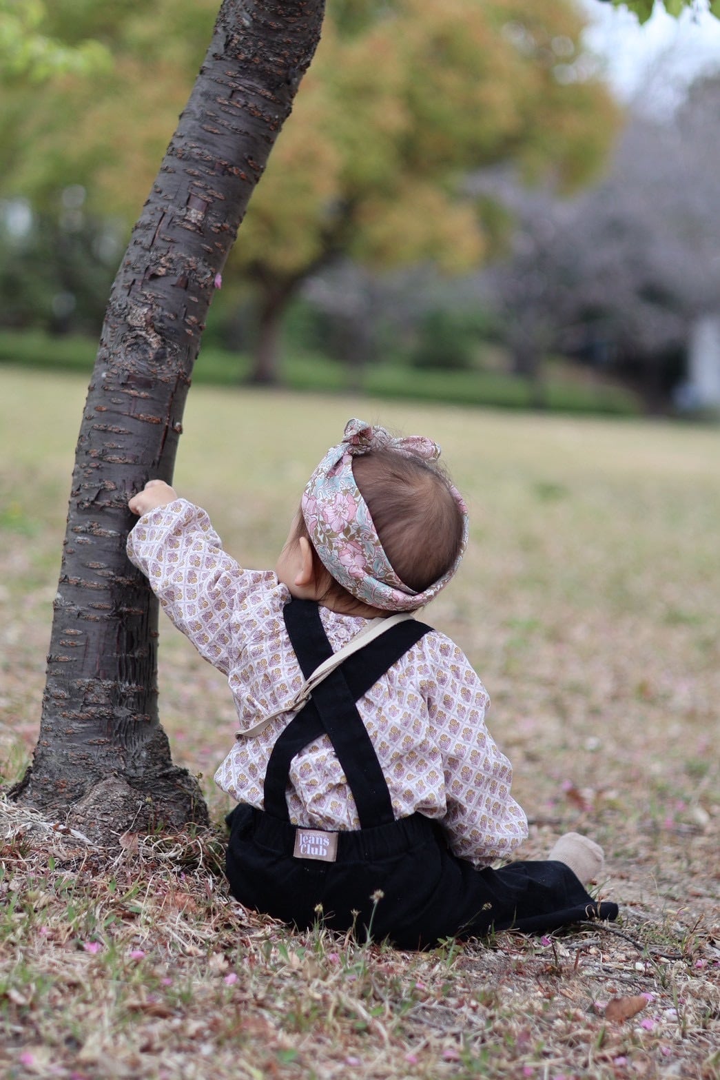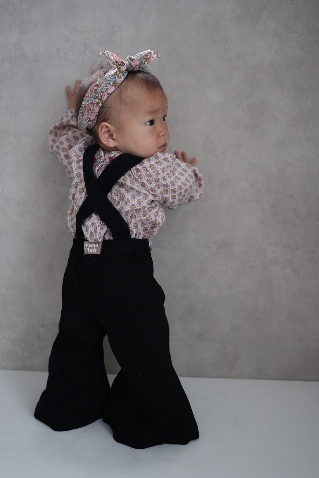 丈夫でストレッチの効いたデニムを使用し、成長に合わせて調整できるセルフタイのストラップ付き。活発に動くキッズでも着心地抜群です。