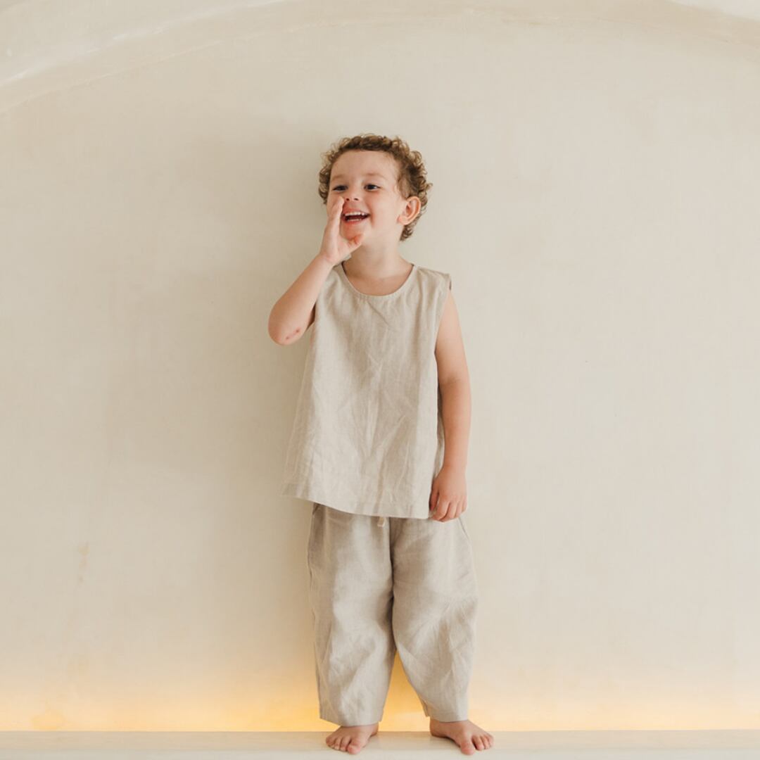 通気性の良い天然リネン素材で、今シーズンもお子さまをおしゃれに、そして快適に。