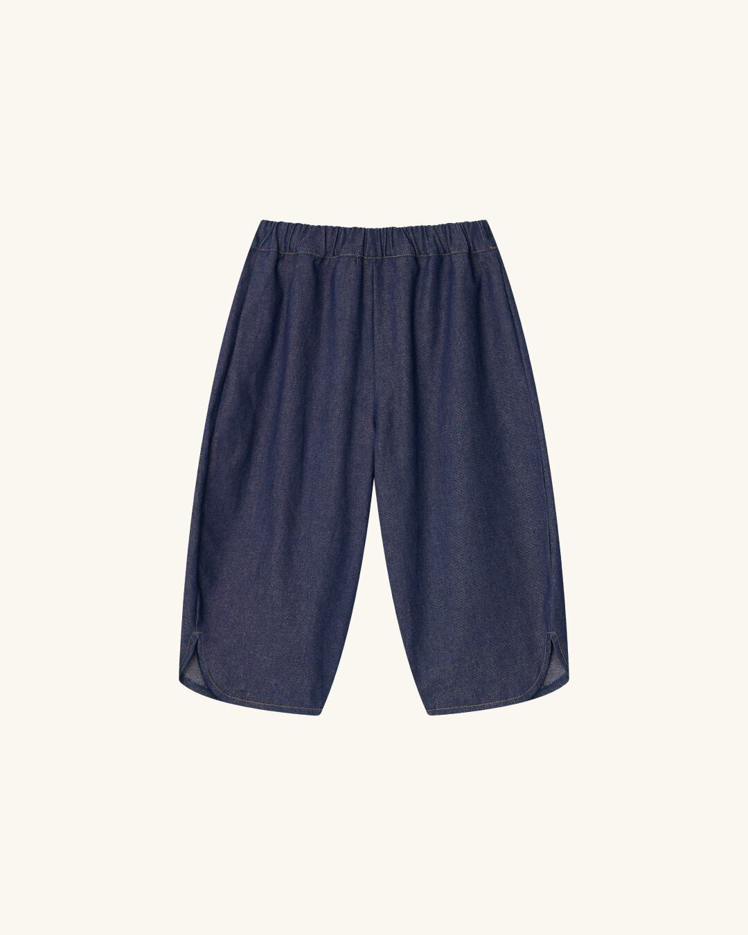 ふんわり広がるバルーンシルエットは体型を選ばず、動き回る子どもにも窮屈さゼロ。裾のスリットがこなれ感を添え、後ろポケットのクローバーラベルがDoucementらしいさりげないアクセントになっています。