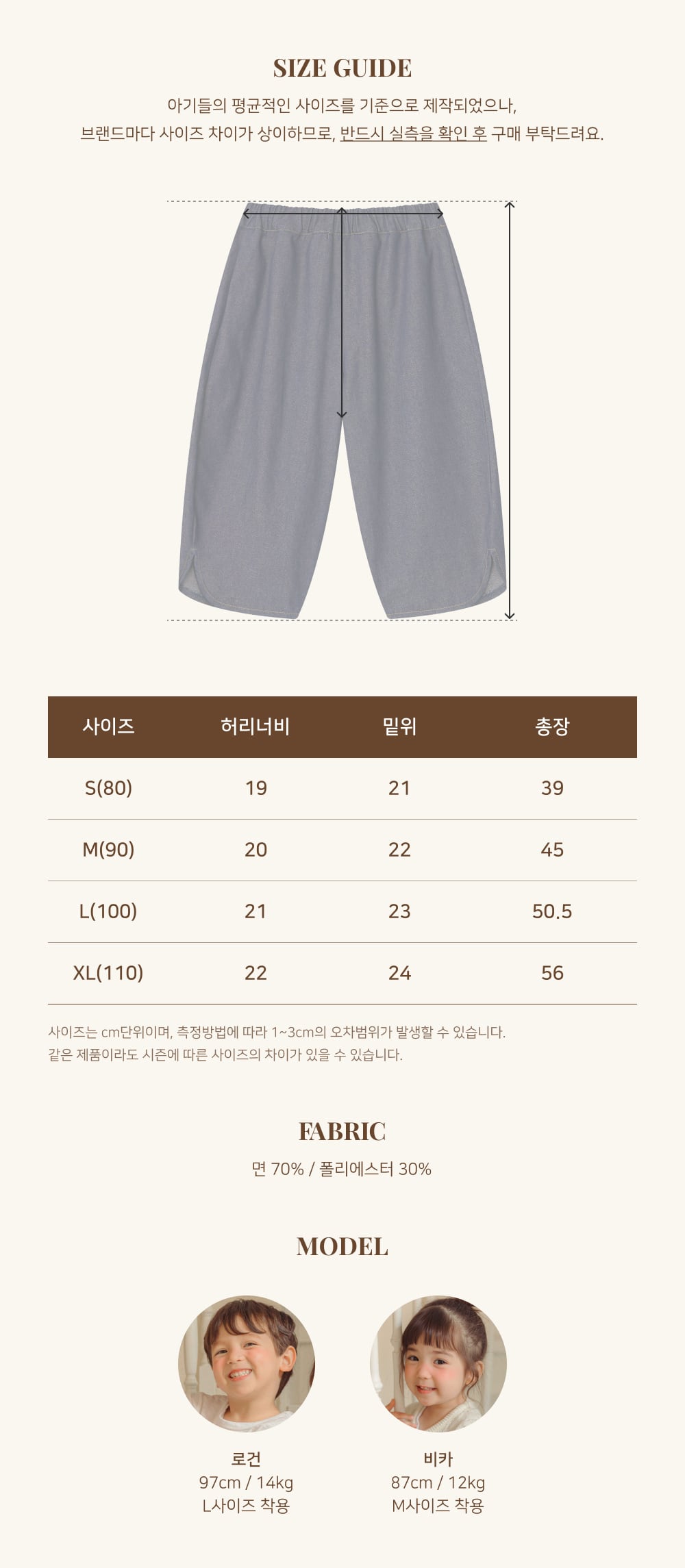 平均体型のお子さんを基準にしています。体型によって差がありますので、実寸サイズをご確認のうえお選びください。測定方法により1〜3cmの誤差が生じる場合があります。